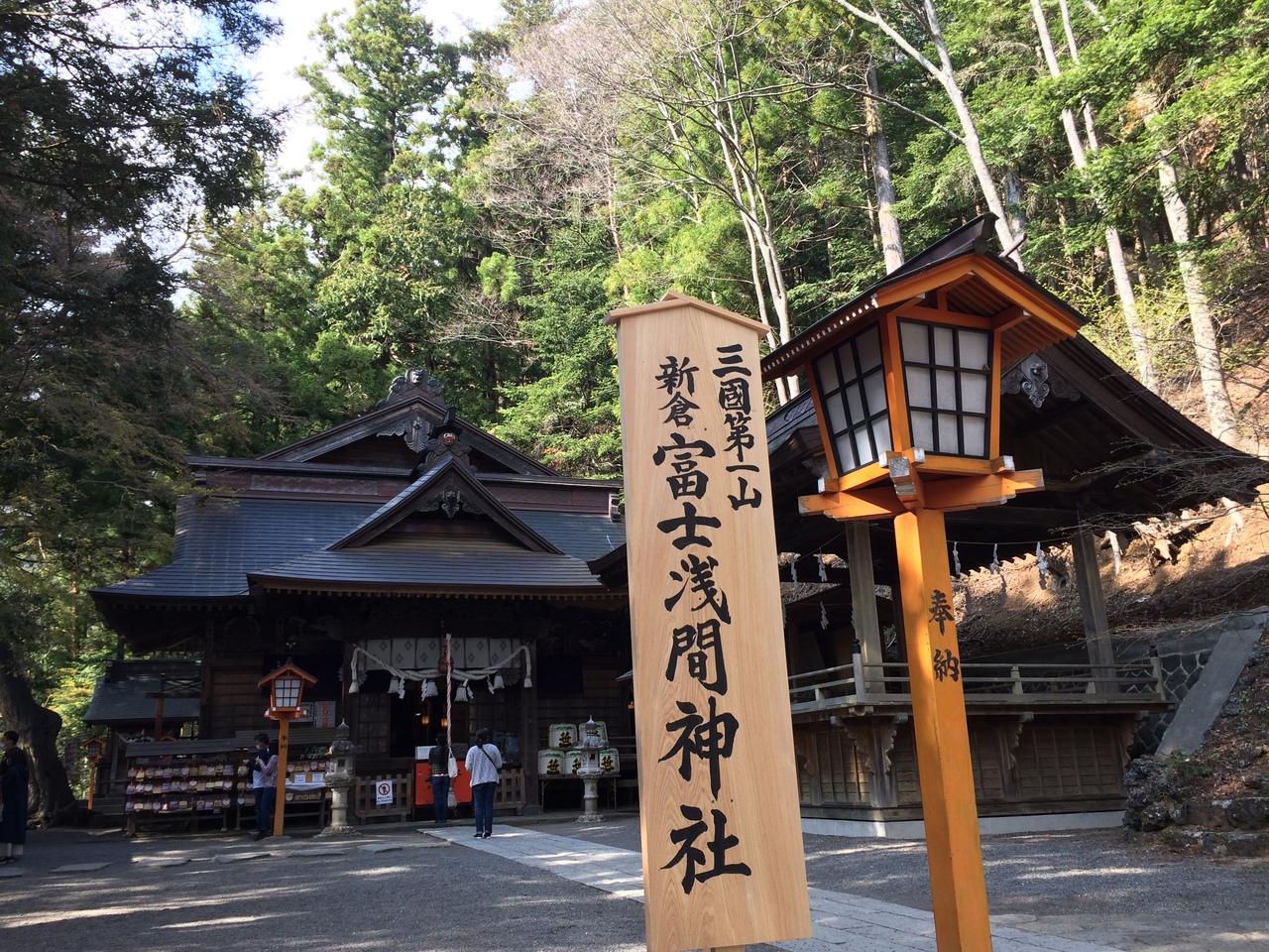 富士山の周辺には、色々浅間神社がありますが、北口のは、富士山駅から徒歩圏内にあります。富士山登山のように、まず金鳥居をスタートして、商店街を歩いてから左に曲がると北口浅間神社の鳥居です。立派な杉が二種あります。