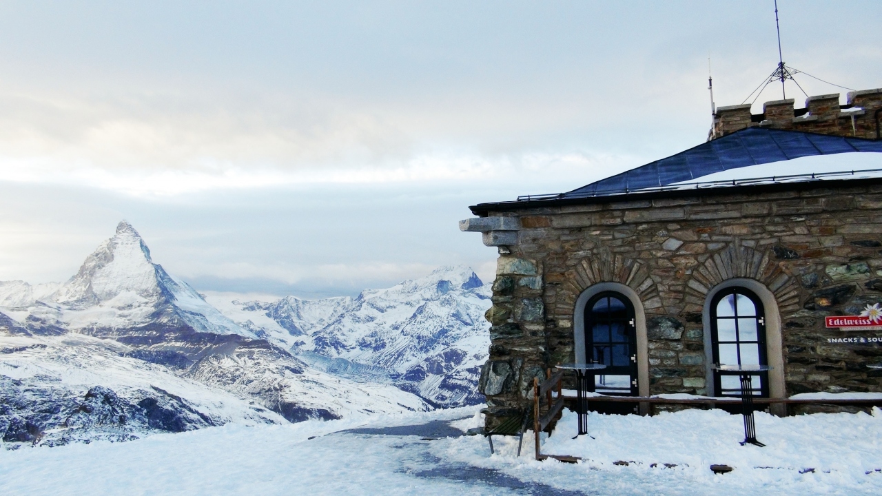 ツェルマットでオススメの、マッターホルンの朝日を眺められるホテルです。ゴルナーグラード鉄道の終着駅で、マッターホルンの絶景ポイントに来たら、普通は往復してすぐに街に戻りますが、ホテルに泊まるという手もあります!こんな山頂なのにシャワー完備で、食事もおいしいから、とってもおすすめです。