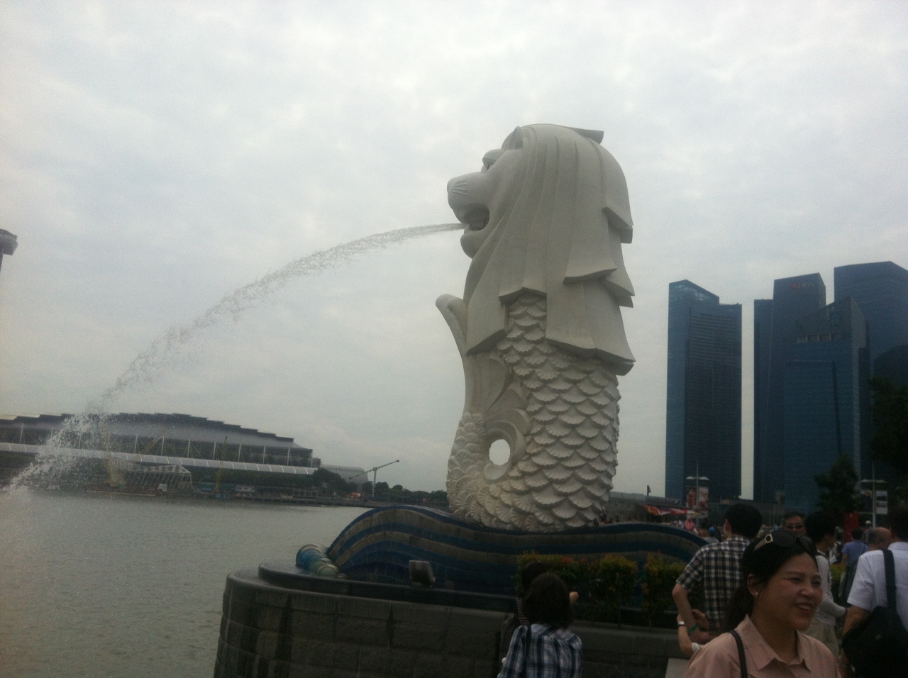 シンガポールと言えば~のマーライオン像で、とりあえず記念写真に~。アングルによって、面白い写真が撮れますので、工夫して撮影するのが今や定番ですね。日差しが強いシンガポールなので、日傘とかUVグッズが必須です。