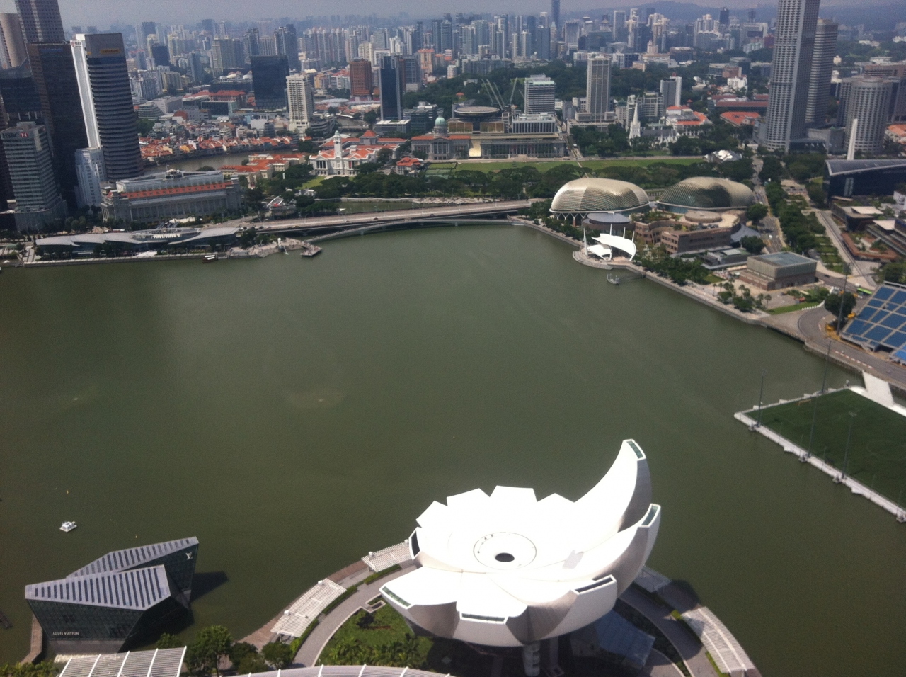 マリーナベイ・サンズの屋上・スカイパークからシンガポールの主要観光地を眺められるので、位置関係を把握するためにも、観光初日とかにオススメです。朝は9時半から夜遅くまで入場できますので、夜景を楽しむという策もありますね。