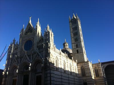 大理石で建設された重厚な外観にまず、圧倒されます。内部は床面装飾等、細部まで芸術が見られます。シエナはこじんまりした街なので、徒歩で観光しやすく、静かなところです。見所は大聖堂周辺に集まっており、近くにお土産やさんもたくさんあります。