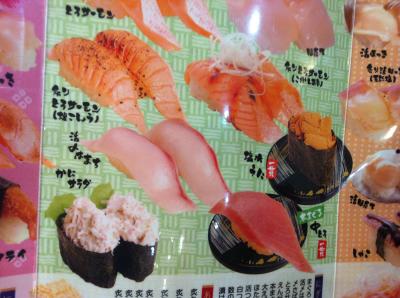 JR駅のすぐそばにスーパー銭湯があり、帰りによるというのが家族でのパターンになっています。お風呂上りはあまり空腹感がないので、2~3皿食べたらもう十分な感じになってます。一皿に一つ一つ違う種類がのっかるのがお得。