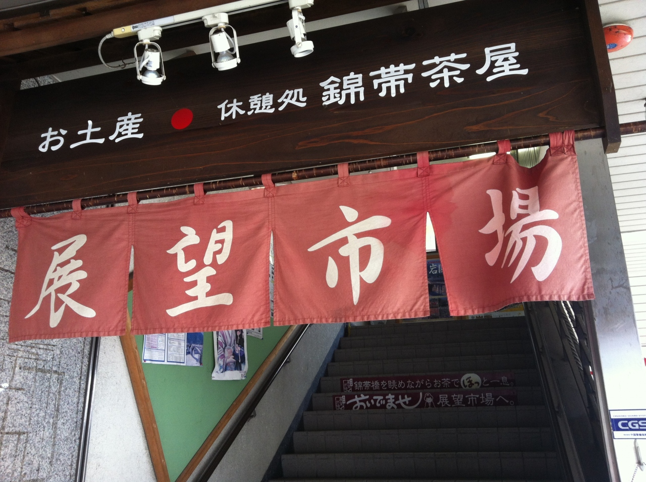 岩国と錦帯橋を結ぶバスの停留所の二階にあるお土産屋さんです。ここは3階が展望台になっていて、錦帯橋と岩国城の写真を撮るには良いスポットです。2階にお土産屋さんがあります。入口近くでVTRが流れてて面白いです。