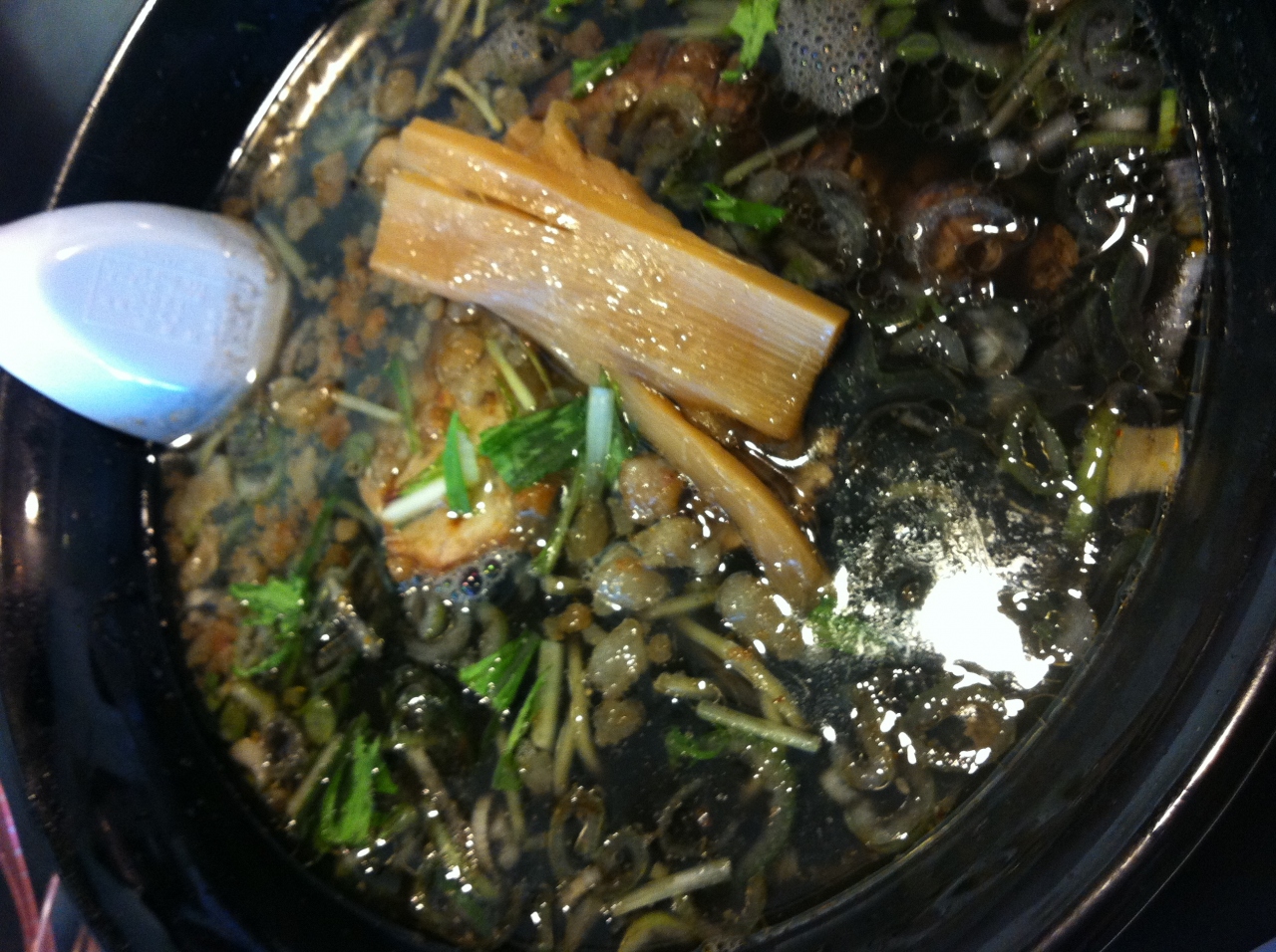 函館の地元民が、ラーメンを食べるなら、ということでお勧めしてくださる店に必ずといって良い程ランクインされる有名店です。ランチは混むのを承知で結構早めに行きましたが階段沿いに10名程並んでました。でもわりと回転がはやく、そんなに長時間まつことなく店内へ。メニューが豊富なので、6名で行きましたが、全員違う注文をしました。ここは塩がメインなので、やっぱり塩でしょう~と言われていたものの、いかすみにひかれてしまった!歯が黒くならないので、女性には嬉しいです。焦がしにんにくが別味付けにスプーンでついてきますが、それを入れるとまた変化がでて良いです。