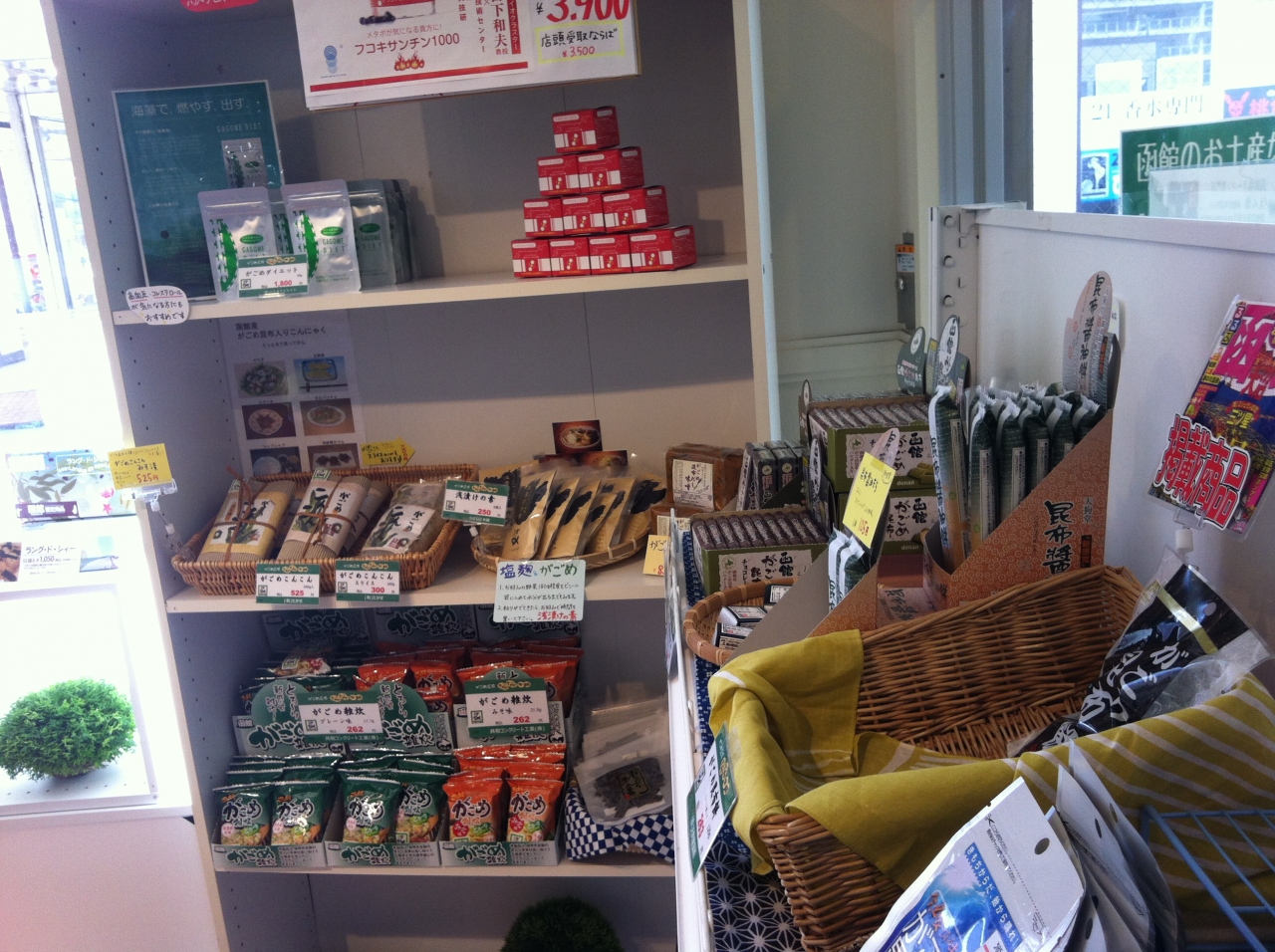 函館と言えば海産物ですが、ここでしかとれない昆布ががごめ。驚異的な粘りをもつので、かめばかむほど、とろとろ~としてきます。おやつに観光したがごめを買いたくて、わざわざ場所を調べました。駅前すぐで便利です。