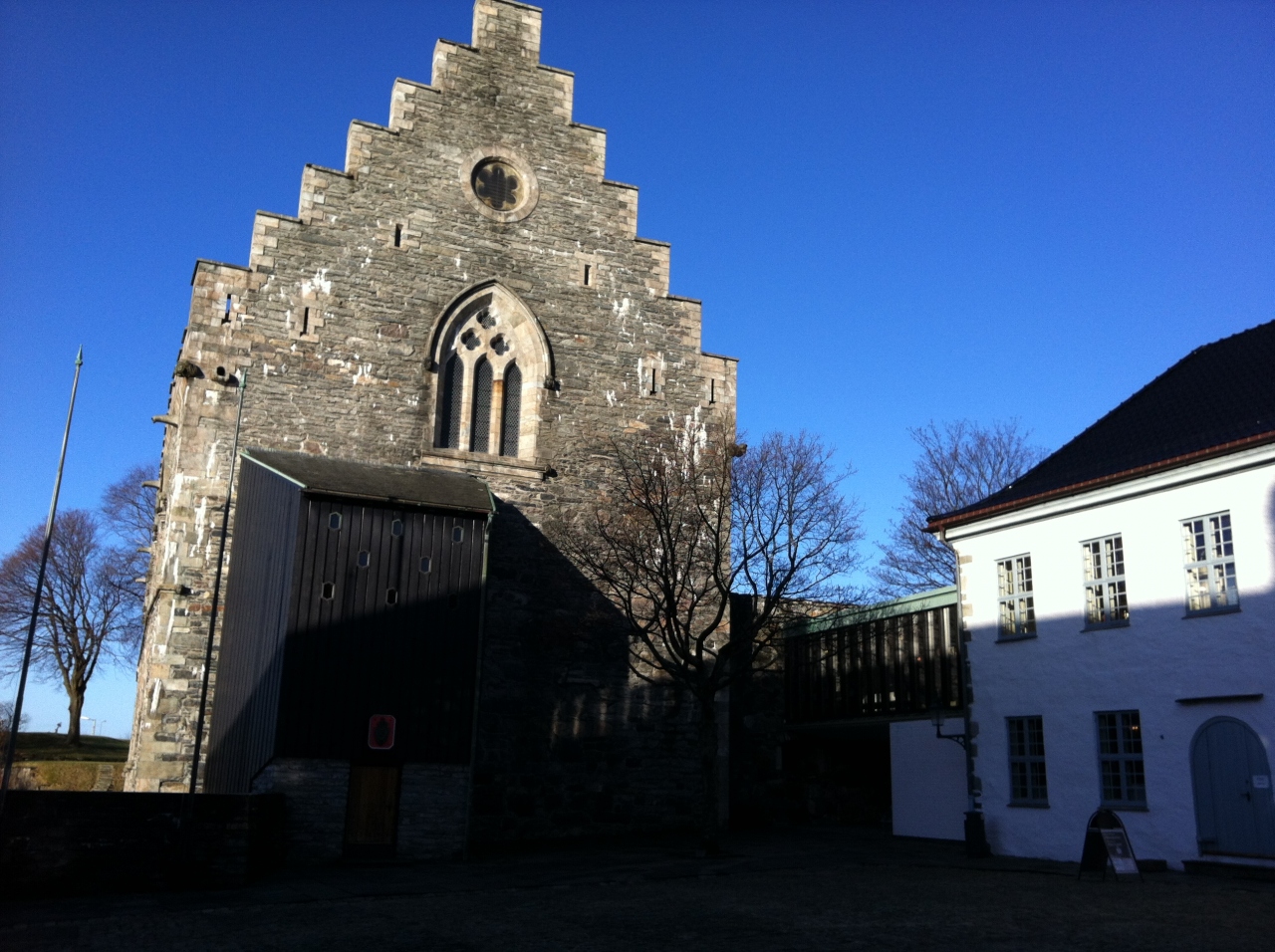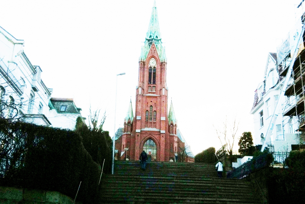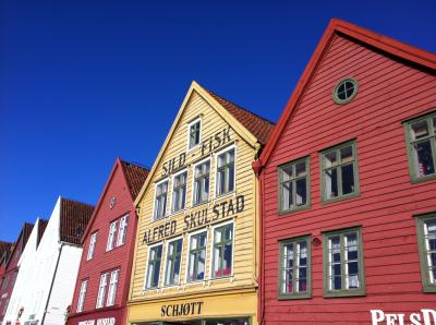 フィヨルド観光のあと、ベルゲン駅まで電車で移動して、駅から夜に徒歩で移動しました。人出が多かったので、そんなに危険な感じはありませんでした。公園の向こう側にあるので、駅からちょっと歩きます。前の通りは車が入らないようで安全です。