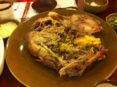 量が多いとは聞いていましたが、本当に二人では食べきれません。メインの鴨のほかに、キムチ等のおかず、そうめんもついてくるので、大人数が良いです。会社帰りの同僚と、あるいは接待という地元の方はちょうど良い量のようです。でも、お持ち帰りをお願いしたら、アルミホイルと袋に包んでくださったので、翌日食べました~