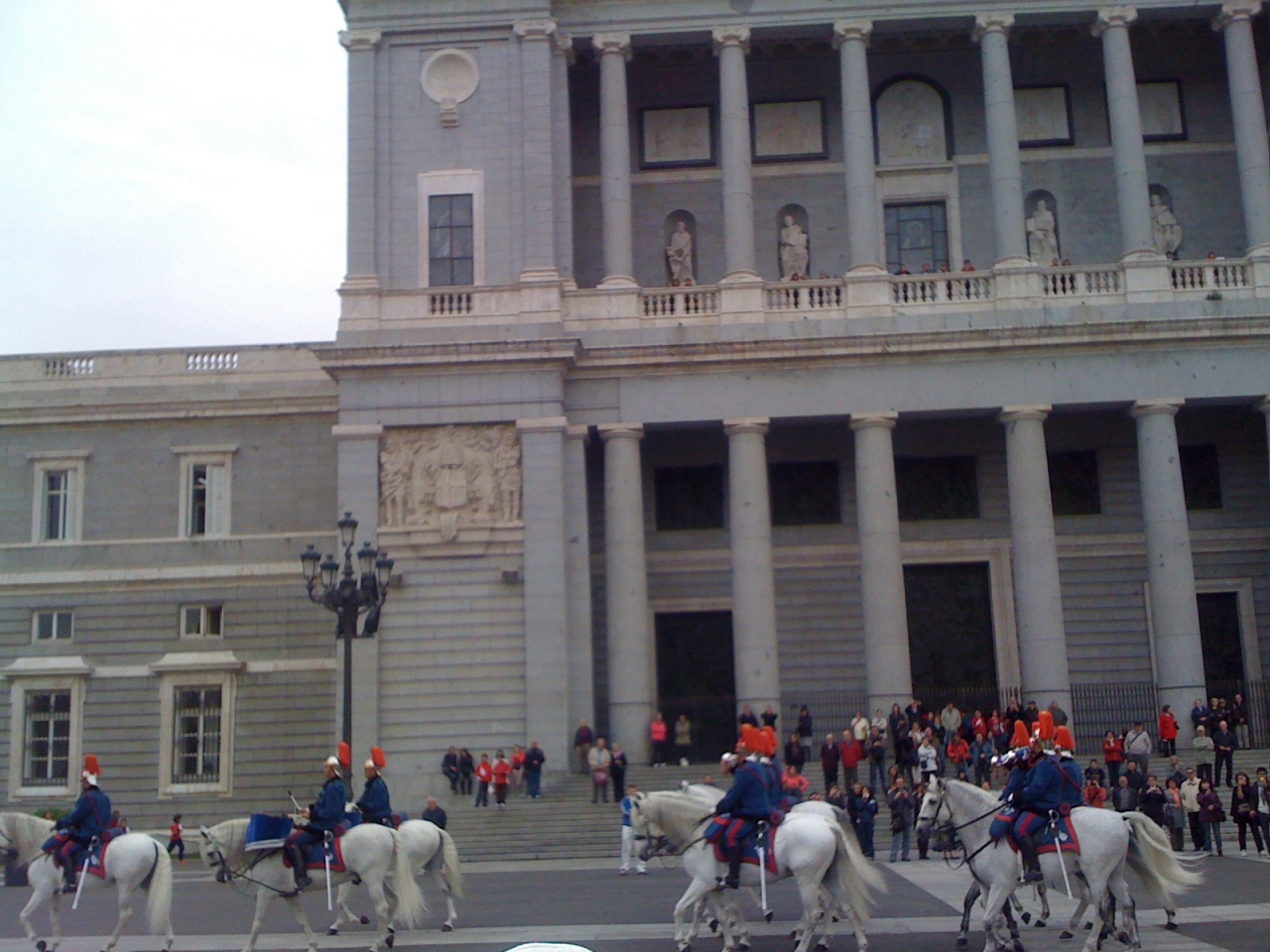 毎月第1水曜日の正午にしか見られない衛兵交代式。スペイン到着日がちょうどその日で、ラッキーでした。ホテルに荷物を置いて速攻向かいましたが、すでに凄い人!早めに行って、王宮内部に入ったほうが、良く見れます。馬術が有名なスペインですから、素晴らしい交代式です。