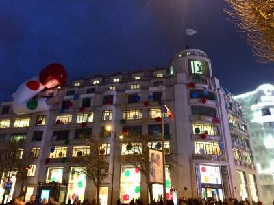 2023年1月からシャンゼリゼで大人気の撮影スポットになっているルイヴィトンです。店内に入らなくてもインスタ映えする写真が撮れます。何故なら店舗の外観がガラリとリニューアル。水玉模様!そして巨大な草間さんが建物にしがみついてる??