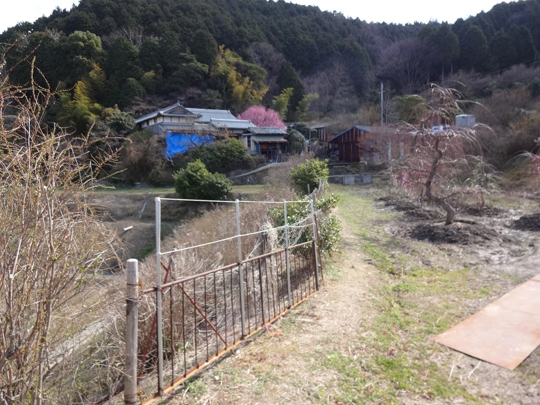 直近の臨時駐車場から村上邸までの最短ルートは畑のあぜ道です。