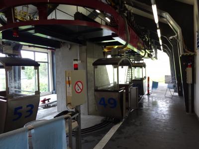 ケーブルカーは向かい合わせで大人二人サイズ、屋根はありますが吹きっさらしです。