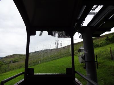 雨の日は座席に敷く小さなビニールシートが渡されますが、かろうじて濡れずに済む程度。