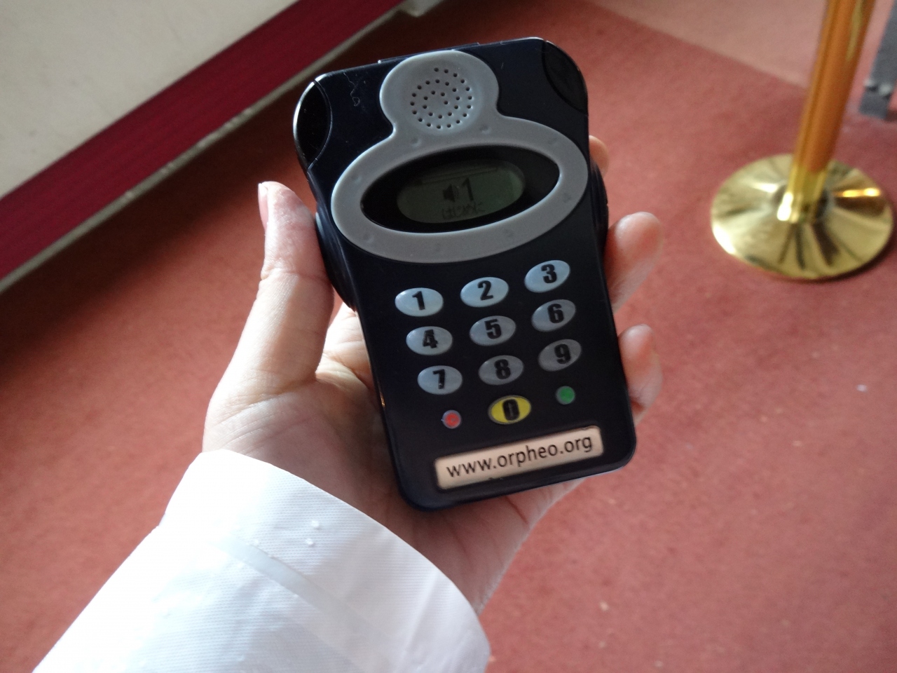 最初に渡されるオーディオガイド(日本語)を電話の受話器みたいに直接耳に当てて聞くのですが、地味に重いです。