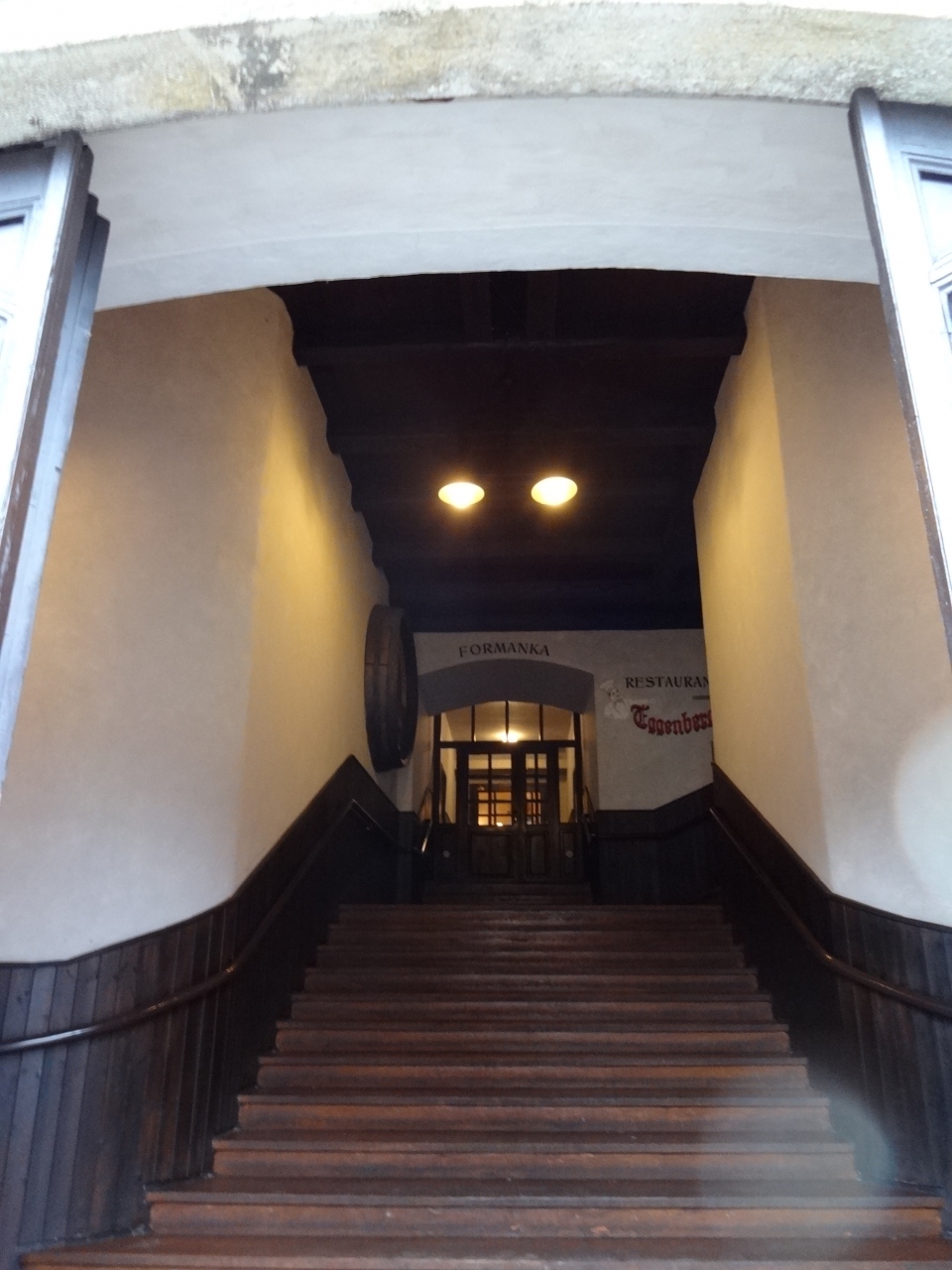 レストランの入り口には階段があります。