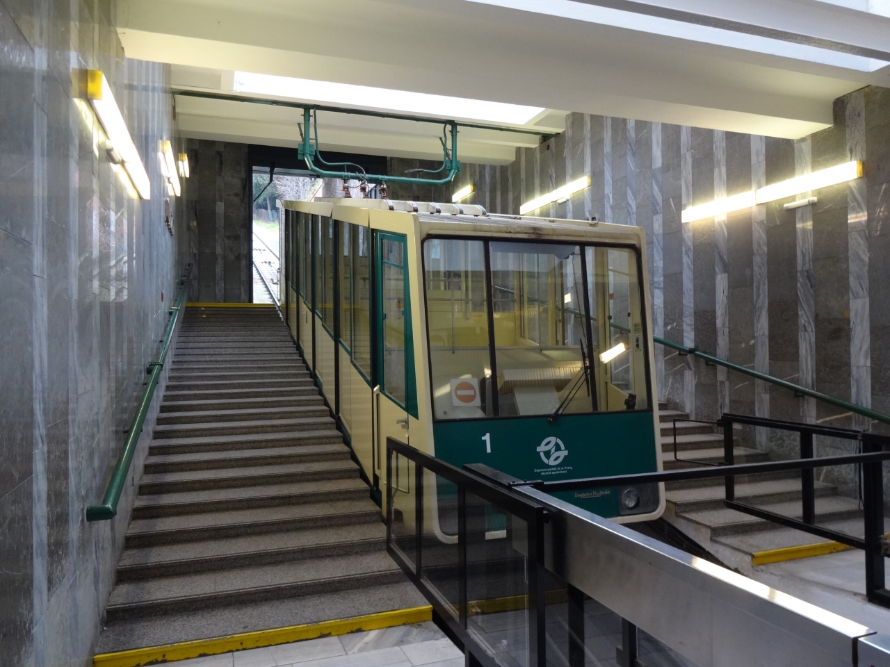 車窓からはプラハ市街を一望できますが、途中壁があったり木々に覆われたり。。。車内は下の段ほど市街方面が見やすく、麓からであれば進行方向右側(北側)の窓際に座ると遠くのプラハ城が綺麗に見えます。