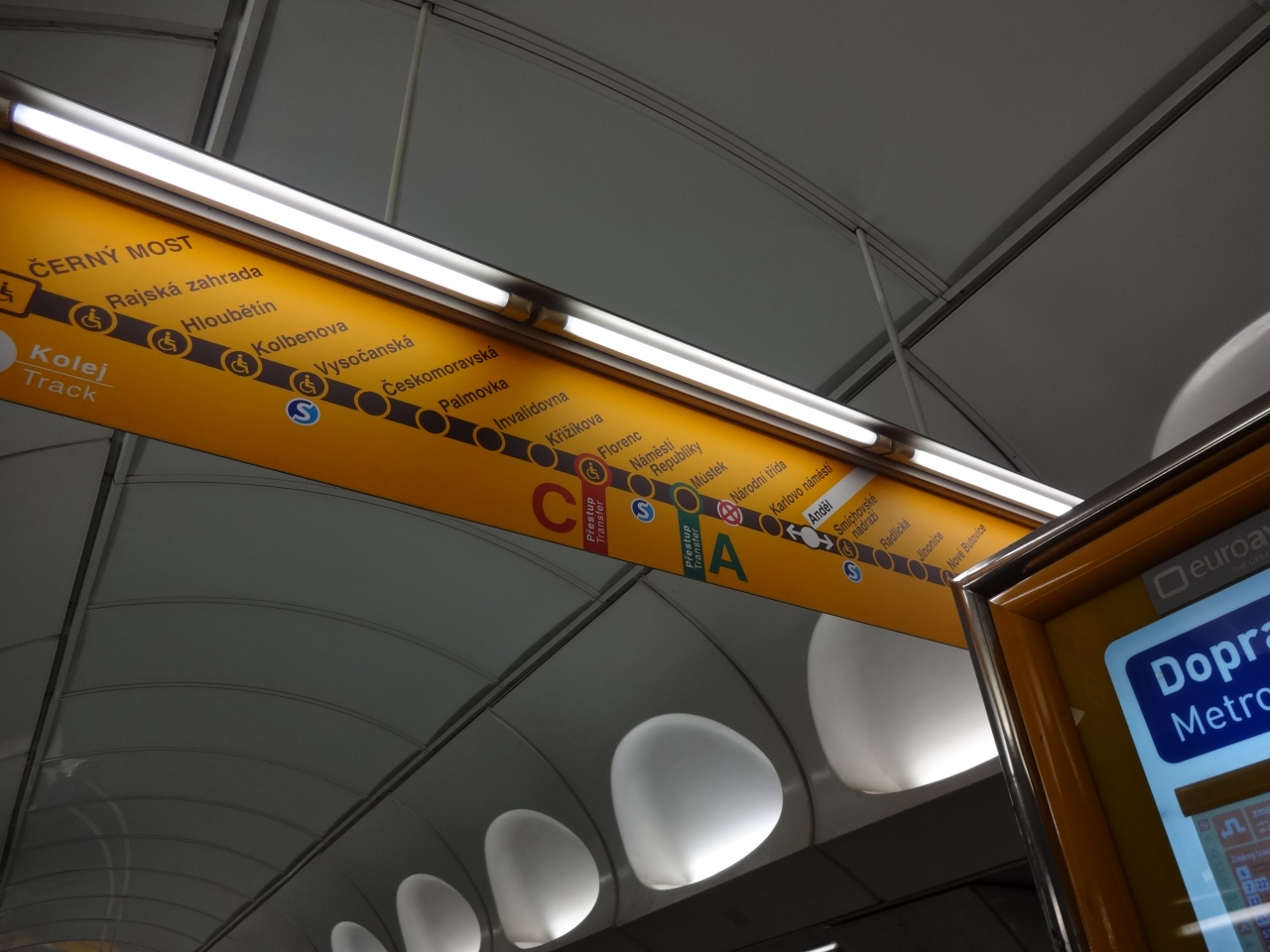 改札口横にあるトイレはコイン式で5CZK。