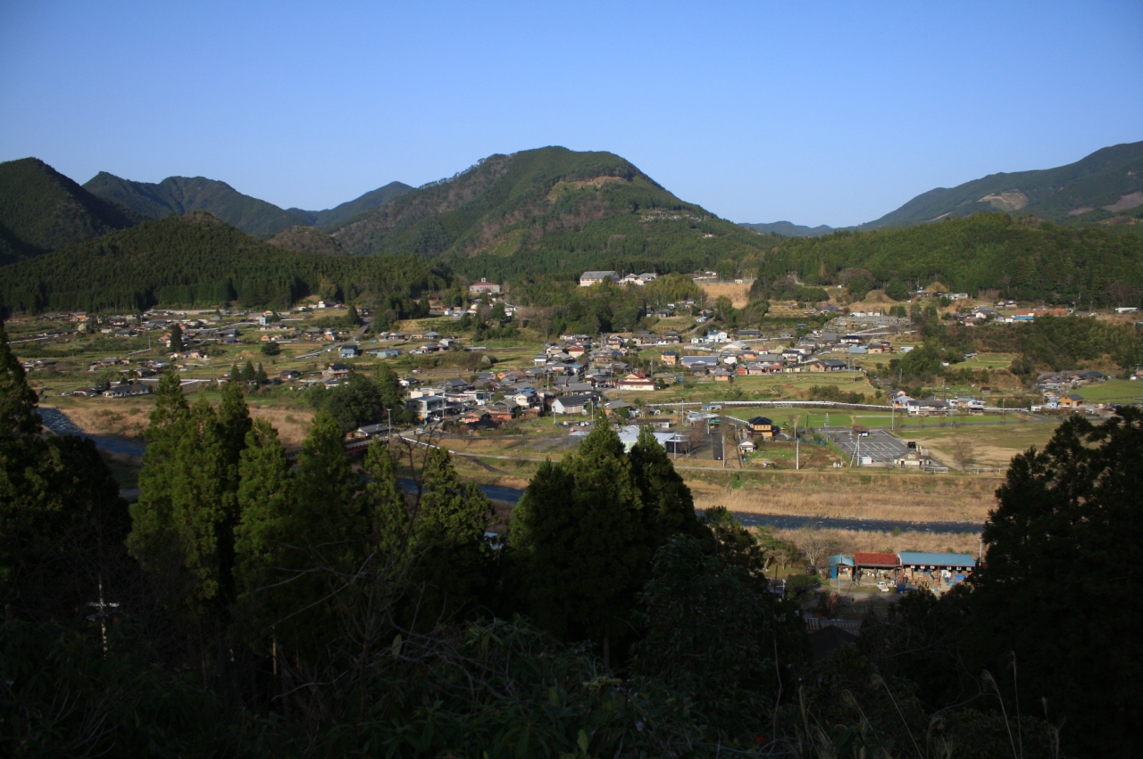 写真は牛馬童士のある箸折峠を越えたところにある休憩所から見た近露の集落の風景です。