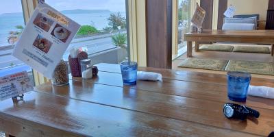 窓から眺める金武湾や離島は、晴れた日なら綺麗だったでしょうね。
