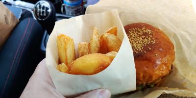 車内で食べましたが、肉肉しさがたまらないバーガーです。