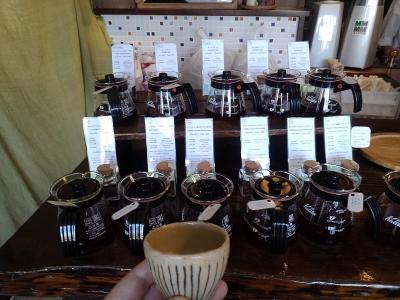 陶器の小さなカップを一つ渡され、商品ができるまでの間に各種コーヒーの試飲ができました。次回購入するコーヒーの参考になることでしょう。