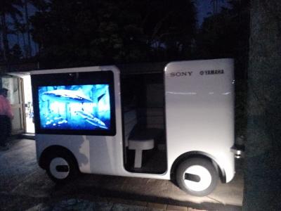 同時に「ムーンライトクルーズ」という別料金で乗ることのできる自動運転の車にも乗りましたが、前の席に座ったら、画面に映し出されたものを見ているうちに揺れがひどくて酔ってしまいました。後ろの席の方がお勧めです。