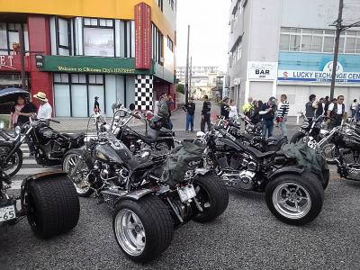 道を封鎖してアメリカンバイクのパレードなどが行われます。