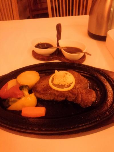 そしてステーキです。焼き加減はレアで注文しましたが、適切な焼き加減でした。ステーキソースも醤油系と野菜系の2種類が出されました。いずれも私の口には少し甘口だったかもしれません。