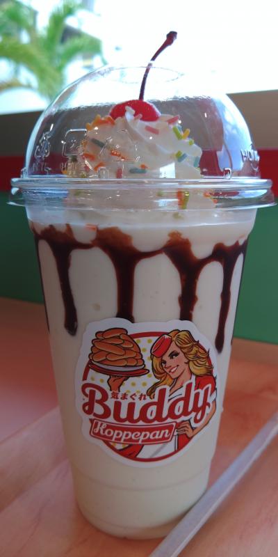 海老とアボカドのコッペサンド(490円)にバニラシェイク(550円)を店内でいただきました。コッペサンドとは文字通りコッペパンに具が挟まったものです。値段は微妙かも。バニラシェイクは映える商品ですね。美味しかったですよ。- 旅行時期