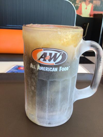 店内でルートビアを飲む際の醍醐味はキンキンに冷えたジョッキですね。