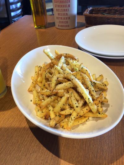 息子はオレンジジュース(400円)、私はアイスティー(400円)そしてフレンチフライ(550円)を二人でシェアしました。