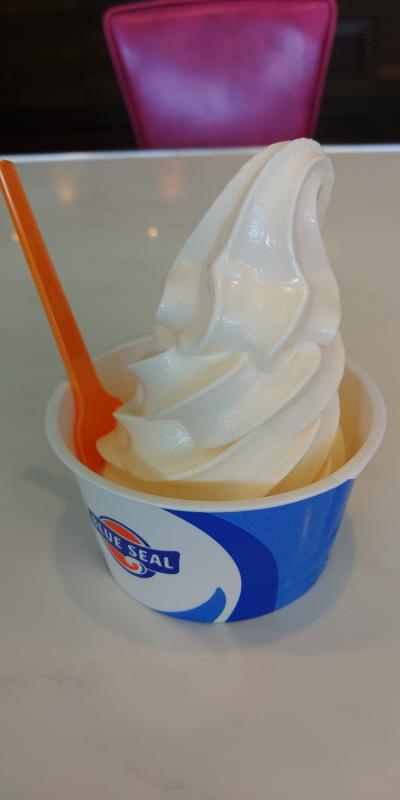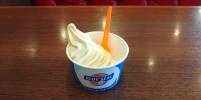 私は常同的にソフトクリームバニラ(350円)しか注文しません。今回もいつもと同じやつを注文しました。楽天Edyで精算しました。- 旅行時期