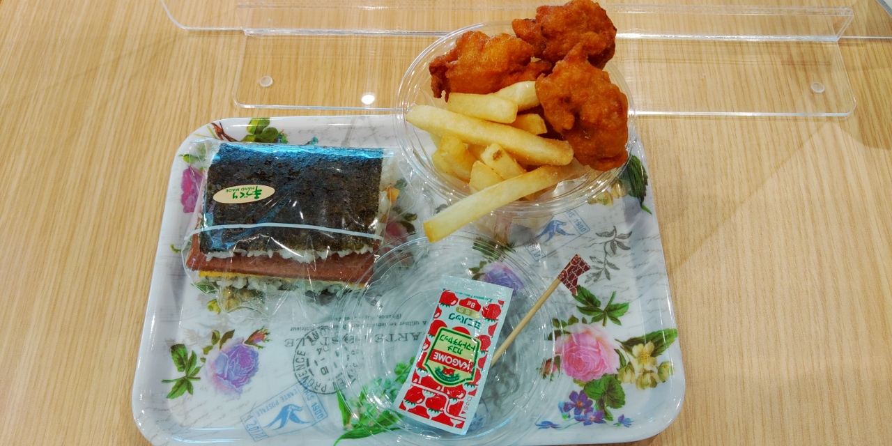 息子がポークたまごおにぎりを欲したので、パーラーで購入しコート内で飲食しました。