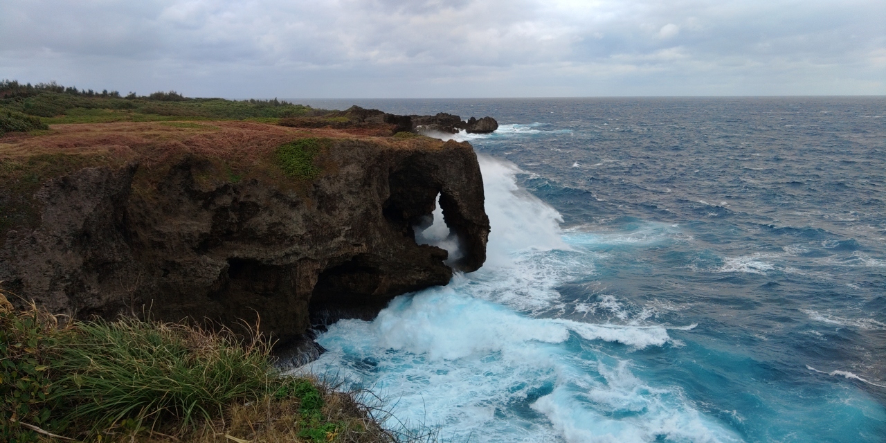 今回私たちが行ったときは日本全国が寒波に見舞われ、沖縄でも冷たい北風が吹き荒れる日でした。東シナ海がまるで冬の日本海のように波しぶきを上げる光景は壮観でした。