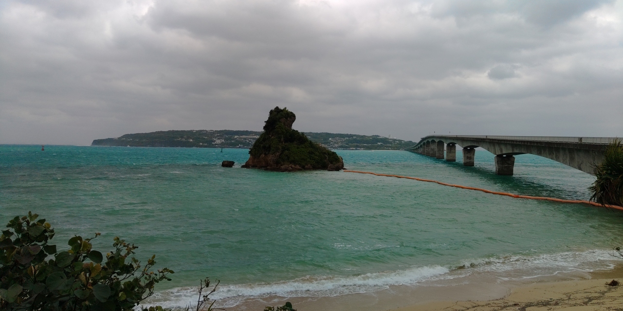 曇り空でも沖縄の海の色は綺麗です。