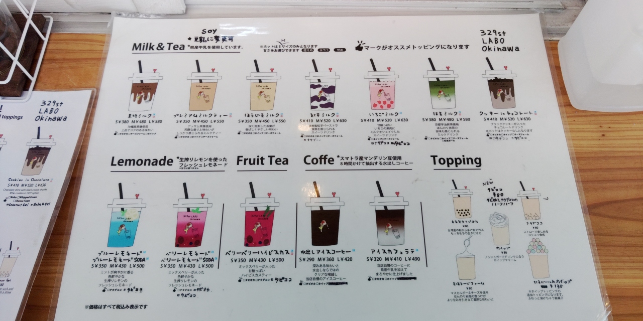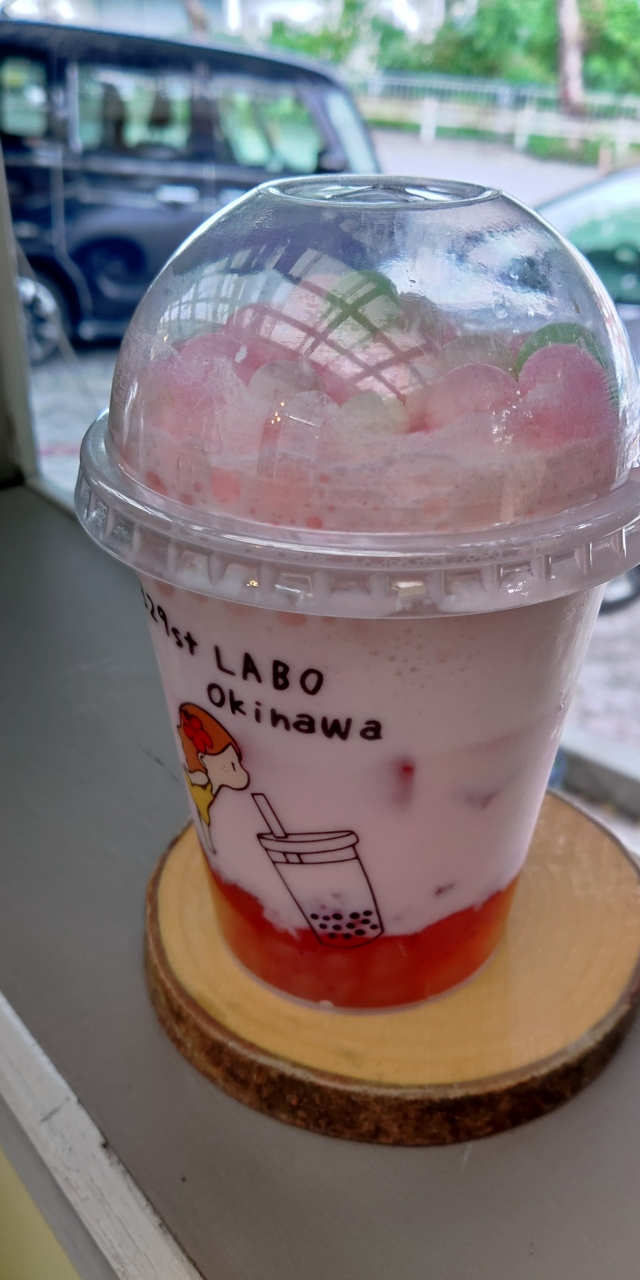 沖縄県総合運動公園で子供を遊ばせた後、国道329号を北上し左側にあるこのお店に寄りました。子供がタピオカドリングを希望したからです。同じ建物に輸入子供服店があるので一見すると分かりにくいですが、服屋さんの左奥に店舗があります。ちょっと狭いですが駐車場は軽自動車なら7~8台くらい停められました。