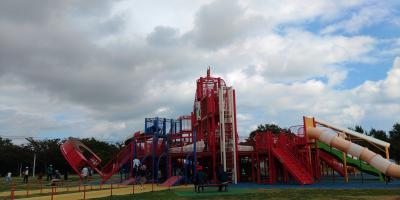 子供を遊ばせるべく連れて行きました。広大な敷地に、スタジアムや運動場の他、巨大な遊具の広場があったり、浜まで下りることができたりと、色々設置されています。オートキャンプ場もあり、テントを張っている家族らもいました。
