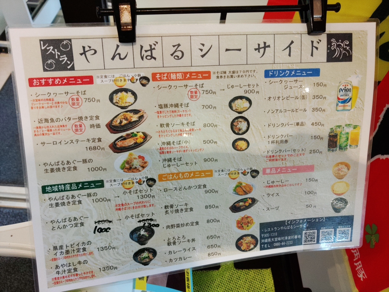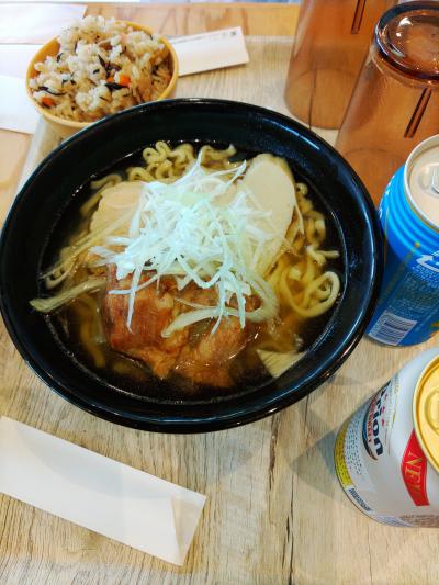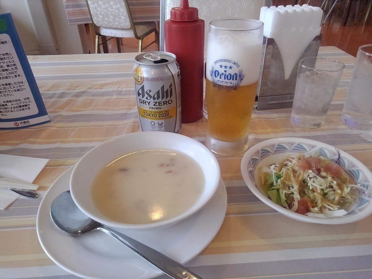 息子には「沖縄そばじゅーしーセット」(800円)を、カミさんはオリオンビール(350円)を、私はノンアルコール(350円)を購入しました。