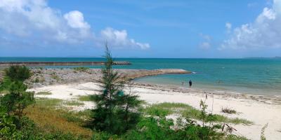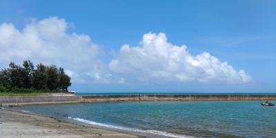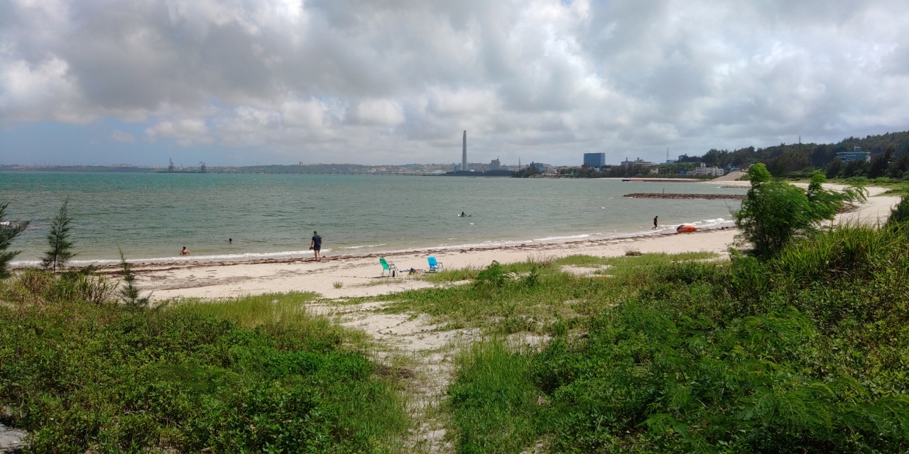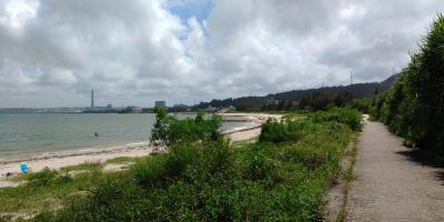 車を停め"漁港"の右側にある遊歩道を歩くと、かなり広い範囲にビーチが広がっていました。私が訪れたのは梅雨明けした日曜日でしたが、数名のアメリカ人と思しき人たち以外は誰もいませんでした。