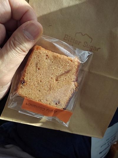 このお店の売りであるパウンドケーキのうちバニラとアップルシナモンを複数個購入し、途中で息子と一緒に食べました。しっとりとして美味でした。- 旅行時期