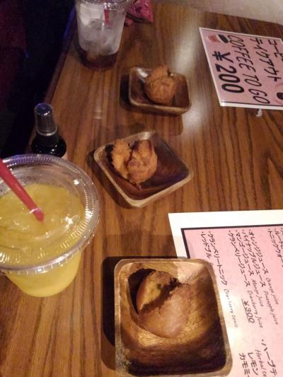 フカフカのソファが置かれているので、そこで注文したアイスコーヒー(200円)をいただきました。お店の外ではサーターアンダギーが揚げられています。1個80円でした。