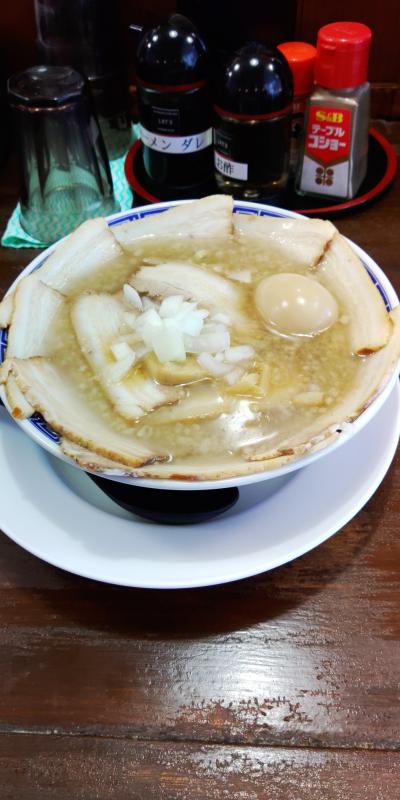 背脂中華チャーシュー(1100円)を選択し、味玉(100円)をトッピングしました。