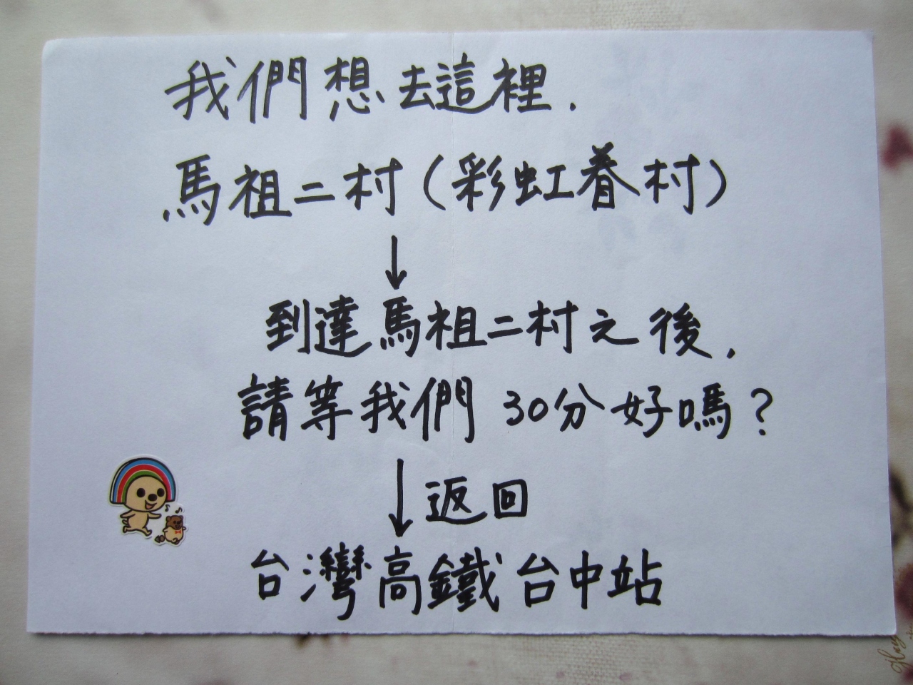 まず、日本で、画像の通りに紙に書いて台湾へ行きましょう。