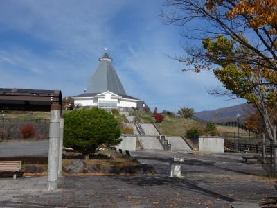 小諸マンズワイナリーへの道中、立ち寄りしてみました。時間調整で期待しないでよってみたらけっこう景色良くてびっくり。公園内の美術館と周りの山と紅葉らが相乗効果でとってもいい感じ。とんがった美術館の建物の風景もとってもインパクトあって良かったです。
