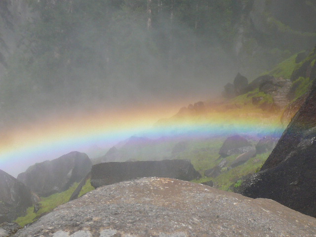 雨上がりに行ったため、さらに水量が多く、水しぶきをシャワー(それも強!)のように浴びましたが、もの凄い虹を見ることができました。まつ毛についた水滴に、マイレインボ−まで見れました!