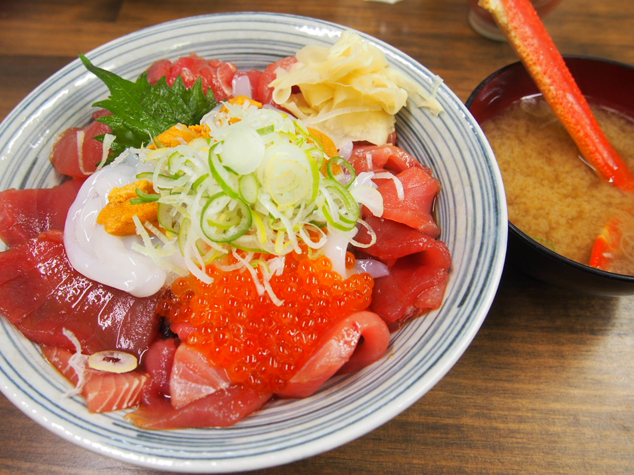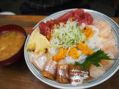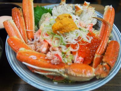 イオン駐車場内にある新鮮市場の中にあるお魚屋さんがやってるお店です。いつも休日に行くのですがいつ行っても並んでいます。しかもオープン前から!まず食券を買って列に並びます。毎回目移りして丼ぶり選びに迷ってしまいますがどれを食べても今までハズレはありません。新鮮な食材の丼ぶりです。この時期はやはり松葉ガニスペシャル丼がお薦め蟹好きにはたまりませんよ♪ご飯の量が大中小と選べますが小には温玉が付きます。あとメニューにボリューム満点のびっくり刺身定食と言うのが限定2名であるんですが一番に並んだらぜひ食べてみたいです!