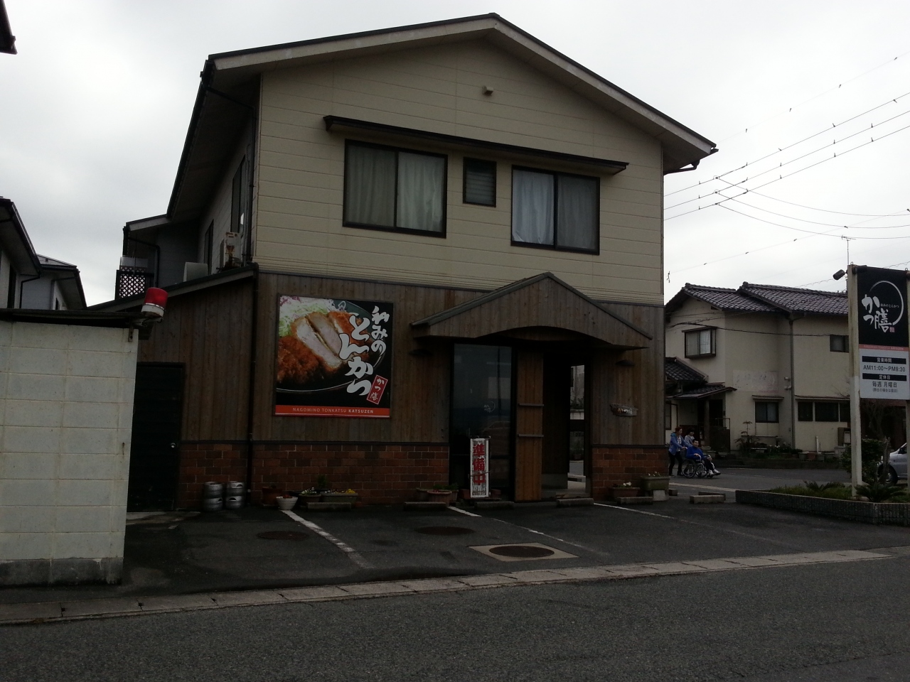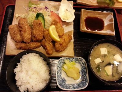 旧市役所の裏あたり一方通行でお店の斜め前に駐車場があります。かきの時期はかき目当ての人が多く人気です。11時30分から開店ですが15分前に到着しましたが既に駐車場も半分埋まっていて4組並ばれていました。最初に座れないとかなり待ちます。お目当ての「かきフライ定食」1100円(昨年より値上げ)をいただきましたがさくさくジューシーなかきフライが9個もありボリューム満点です!かきフライ以外にもえびフライ、とんかつ、チキンかつなどの定食もあります。