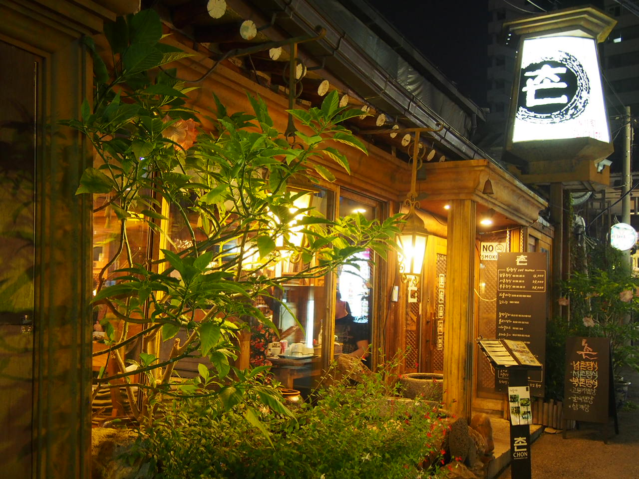 仁寺洞のホテルに宿泊していたのでお昼か夜にお手軽に韓定食を食べれるところを調べていて韓屋ぽく雰囲気がよさそうな韓定食のお店チョンへ夜に行ってみました。欧米系の団体さんや地元の方など賑わってました。メニューはお昼も夜も同じだと思います。エリアの名前の付いた定食などが何種類かあります。お値段もお手頃だったので南村定食をいただきました。お肉お魚そして野菜と品数がありそれぞれの料理も美味しかったです。また仁寺洞へ行く機会があれば利用したいお店です。