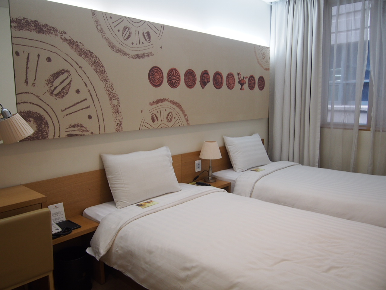 空港からのバス停がホテルの目の前にあり古宮や仁寺洞や北村へ歩いて行けるのでこのホテルを選びました。明洞からもちょっと離れてますが歩ける距離です。部屋はスーツケースがギリギリ広げれるかな?綺麗にしてありました。宿泊したプランはシャワーのみでバスタブなしで段差が少ししかなく水が漏れそうでした。。ホテルの一階にはセブンイレブンがあるので便利です。残念だったのはフロントは愛想がない若い男の子で対応が今ひとつ冷たい感じでした。