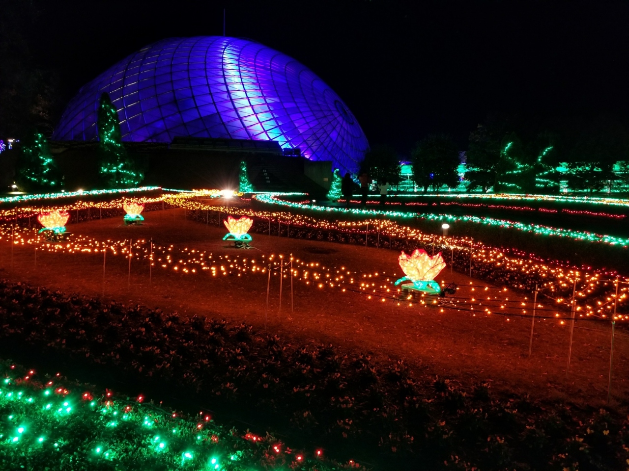 昼間の開園に加え11月下旬から1月末の17時半(点灯)から21時までフラワーイルミネーションが開催されているので初めて夜のとっとり花回廊へ行ってきました。園内は広いですがそれぞれのエリアでテーマがありそれにそったイルミネーションが楽しめます。
