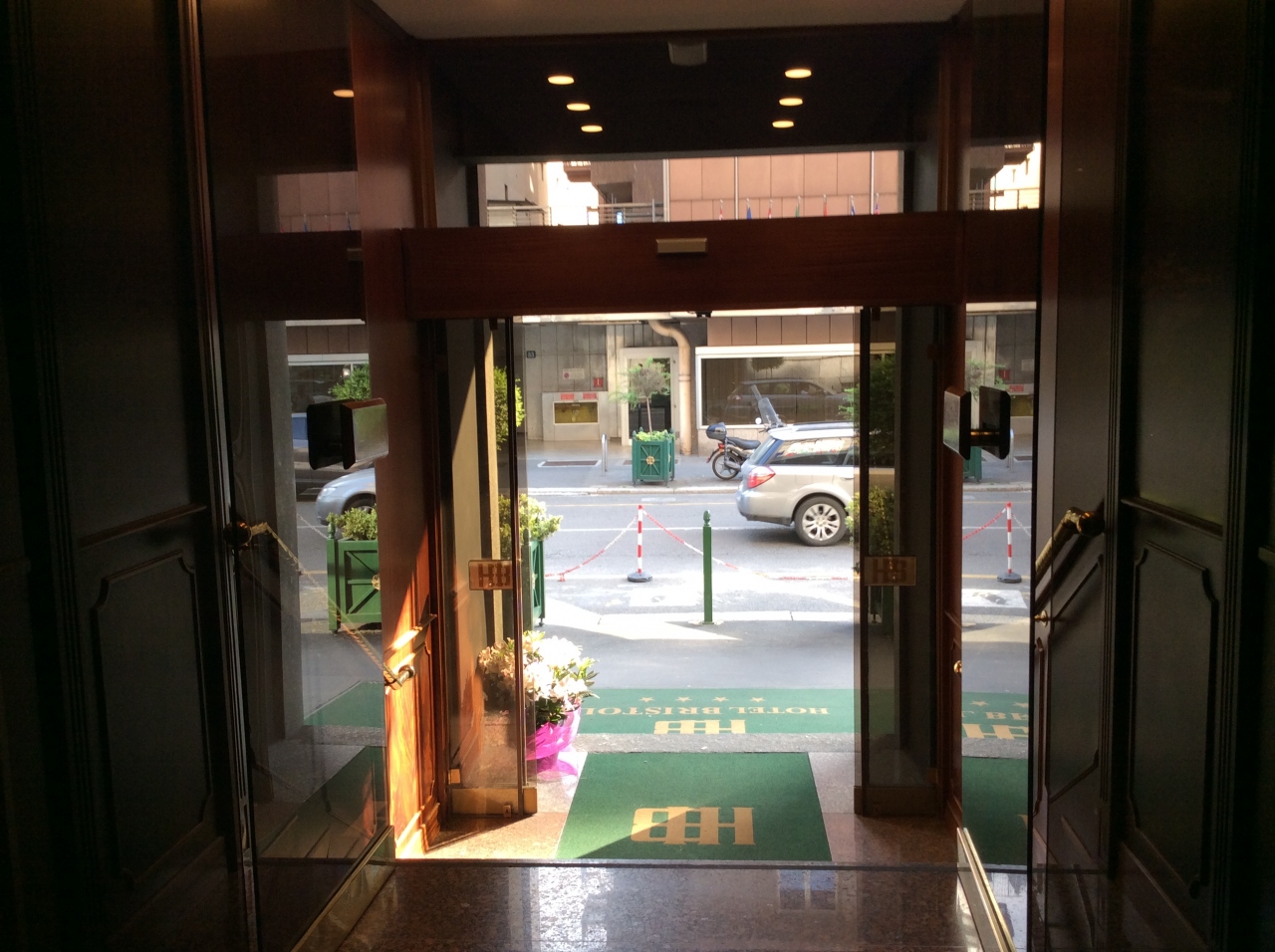 ミラノチェントラーレ駅の目の前で、マルペンサ空港行きバス停も駅反対側だが徒歩で5~7分圏内。入り口に3~5段程の階段あり、キャリーバッグ抱えて上るのは困難、だが、実際にはフロントスタッフがすぐに駆けつけて、運んでくれた。